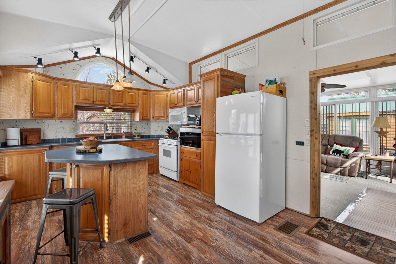 Who's ready for summer on the water? This park model with a spacious addition offers the perfect blend of comfort and getaway vibes-whether you're here for weekends, the full summer, or year-round living. Inside, you'll find a full bedroom plus a double loft-plenty of space to host friends and family. The open kitchen features a unique island/breakfast bar with stylish pendant lighting, while updated vinyl flooring adds a warm, cabin-like feel throughout. The sun-filled addition is surrounded by large windows, bringing in beautiful natural light.Step outside to enjoy a large back deck, a fenced yard with low-maintenance pea gravel, a paved driveway, and a tiered seawall with your own boat dock-ideal for making the most of waterfront living. Located in Shadow Lakes, Live a life you do note a vacation from. Notable updates include: Full-size washer & dryer, Natural gas (no propane), New furnace (2018), New water heater (2024), Back deck refinished (2021), Front deck refinished (2022) Shadow Lakes is a private gated community surrounded by miles of interconnecting, spring-fed channels, lakes, and marshes-perfect for fishing, swimming, and boating, with some areas reaching depths of up to 42 feet, offering great opportunities for big fish. Wildlife is plentiful, adding to the natural beauty of the area. The HOA provides a wide range of amenities, including a clubhouse, two community pools, a separate sandy beach, golf cart trails, nature walks, an ice skating rink in winter, a pavilion, a dog park, and sports facilities such as volleyball and basketball courts, along with other recreational activities suitable for families and groups. Whether you're looking for a full-time residence or a weekend retreat, this community offers a relaxing and active lifestyle. Conveniently located near I-55 and only 60 minutes from Chicago, it's an ideal escape. The community allows only electric boats and golf carts, with association dues tiered based on level of usage; these dues cover your water, sewer, and garbage costs. Prospective buyers and agents are encouraged to contact Shadow Lakes or visit the website for current rules and detailed information. Please note that lot sizes and square footage are estimated.